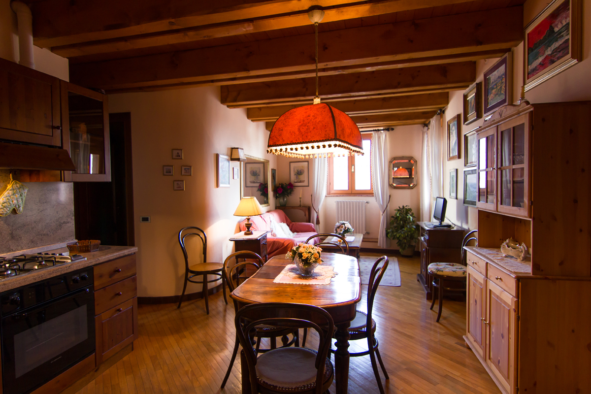 Ha una stanza matrimoniale ed una stanza con un letto a castello (può dunque ospitare 4 persone), 2 bagni, lavatrice, una saletta con divano e angolo cucina. Aria condizionata, TV, wi-fi, macchinetta da caffè sia tradizionale che in cialde.