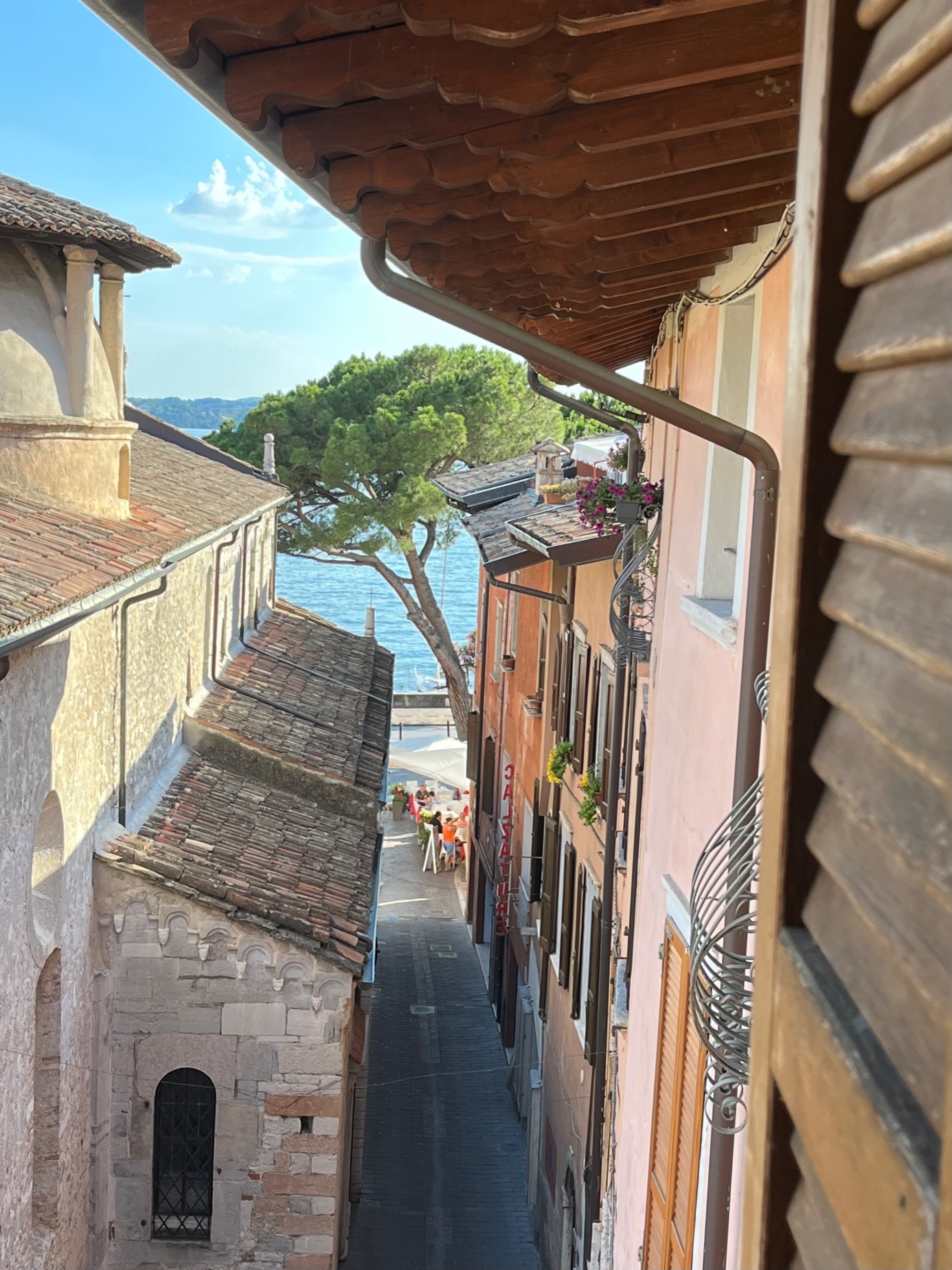 Its location is strategic for visiting the many places of interest that can also be reached by ferry and, thanks to the mountains behind it, the summer temperatures are less high and humid than in Desenzano or Sirmione.